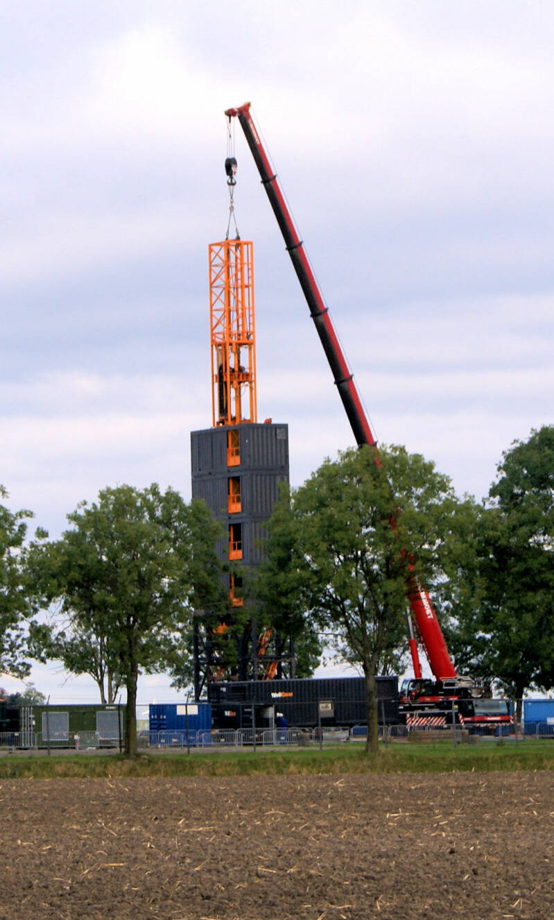 De opruimtoren in bedrijf op locatie Uiterburen.